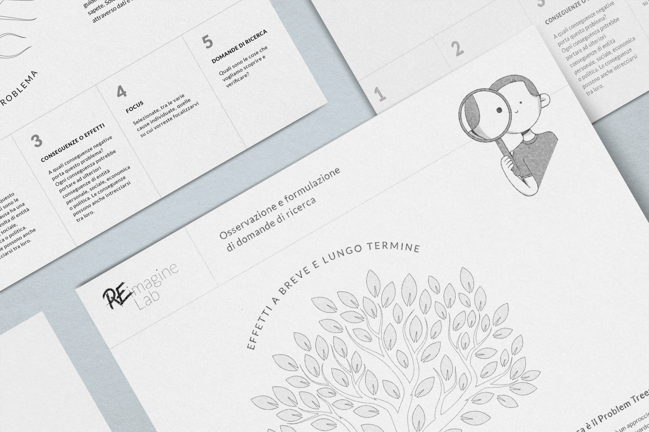 Per guidare i partecipanti nella fase di Osservazione e formulazione di domande di ricerca abbiamo creato il Problem Tree Canvas.